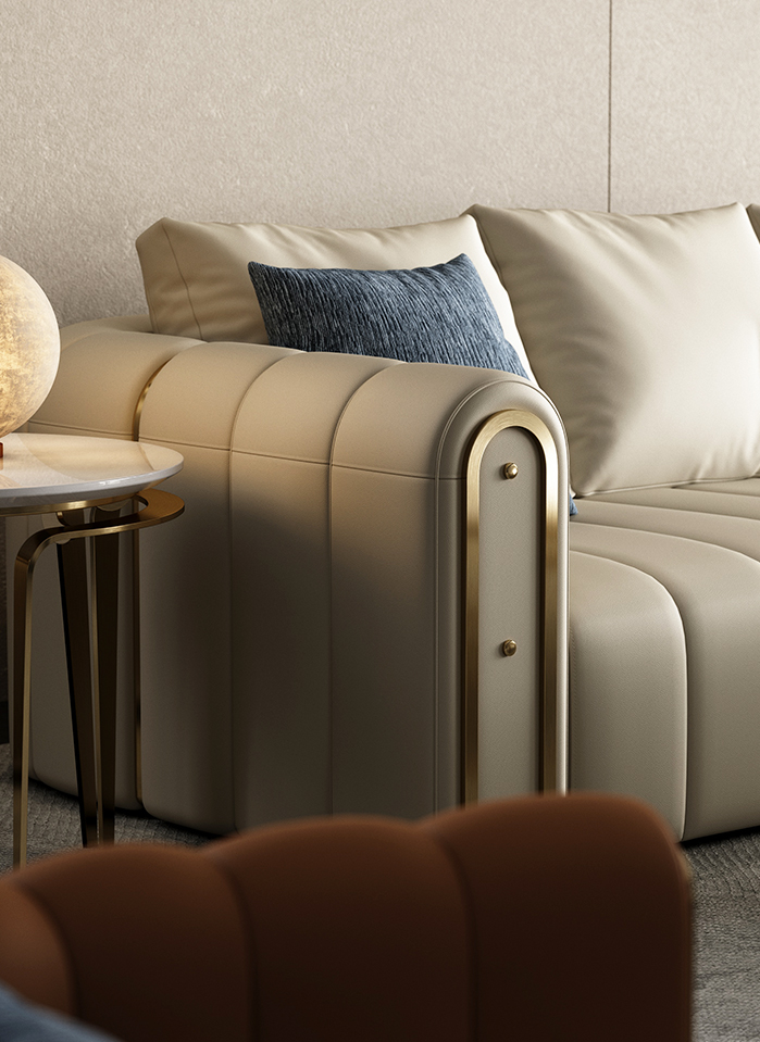实用与美感并存一体式扶手设计,引入拉丝金属装饰,营造出光而不耀的感官意象。 |